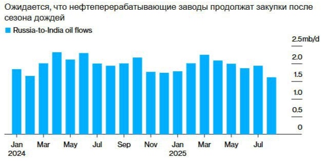 В сентябре 2025 г индийские НПЗ не планируют отказываться от российской нефти, несмотря на возобновление торговых переговоров с США, хотя объёмы ниже прошлых пиков.
