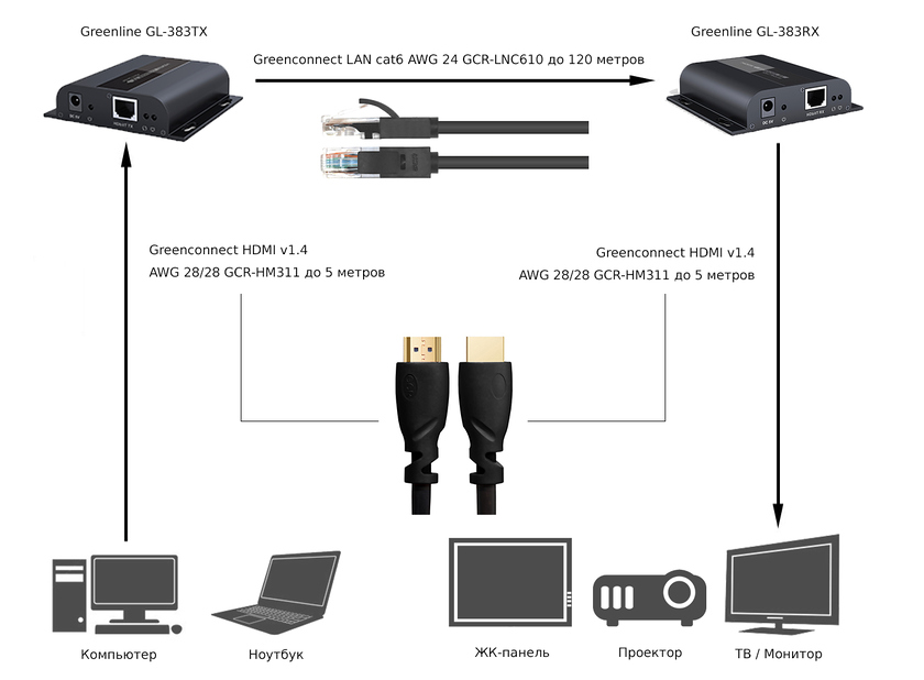 - HDMI удлинители по оптическому кабелю до 20 000 метров;