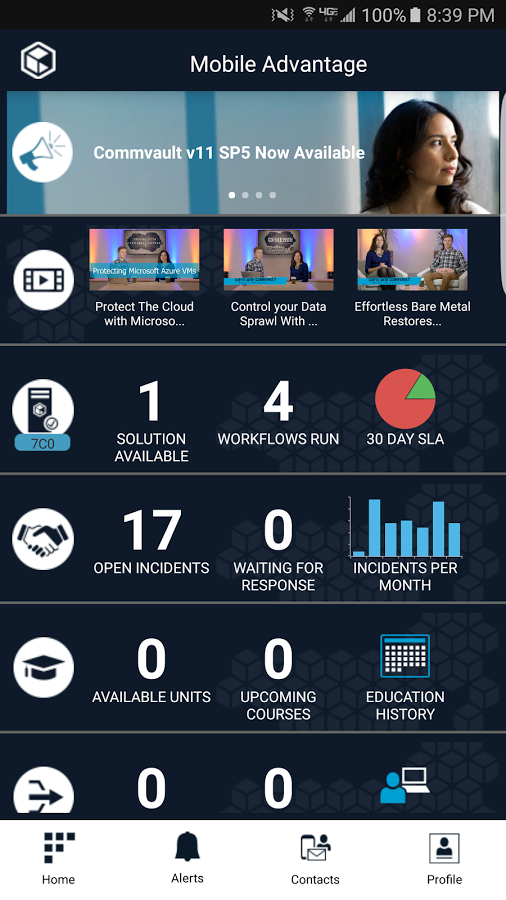 Mobile Advantage обеспечивает заказчикам постоянный доступ к утилитам, сервисам и информации для контроля над средой Commvault.