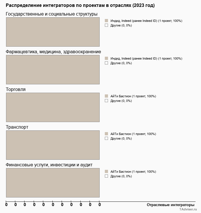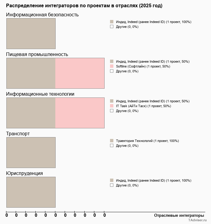 Отраслевое распределение по количеству проектов внедрений