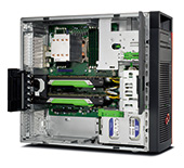 Доступно до 512 ГБ DDR4 (частота до 2933 МГц) оперативной памяти. Со станцией, в зависимости от задач, можно использовать накопители самых разных форматов: это и жесткие диски Serial ATA III до 6 ГБ со скоростью вращения 7200 оборотов в минуту или SAS (2400 ГБ, 10000 об/мин) и твердотельные накопители с интерфейсами Serial ATA III и PCIe с поддержкой технологии NVMe (до 1024 ГБ). Из накопителей можно организовать RAID-массив уровней 0/1/5/10. В зависимости от решаемых задач, графическая плата подбирается в широком диапазоне —от Nvidia Quadro P400 до Nvidia Quadro RTX 8000.