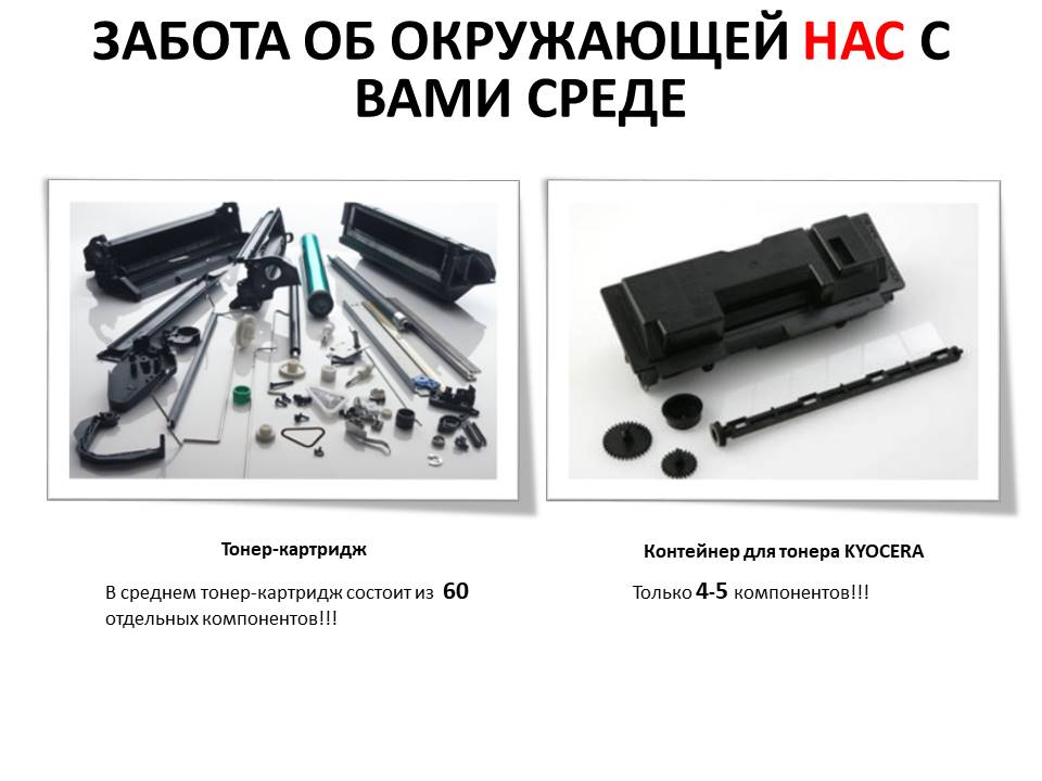 Благодаря культуре производства, внедрению инновационных технологий и строгому соблюдению экологических норм, оригинальный тонер KYOCERA по цене ниже аналогов от других производителей. Компания заменила картриджи оригинальными сменными тубами, которые показывают большую ресурсную эффективность.