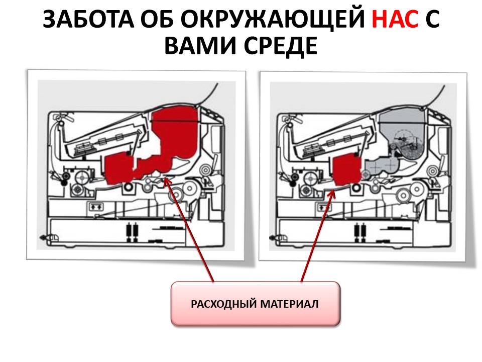 Также, меньшее количество деталей, которые необходимо заменить по мере расхода тонера, сильно сказываются на стоимости, безопасности утилизации и простоте обслуживания техники.